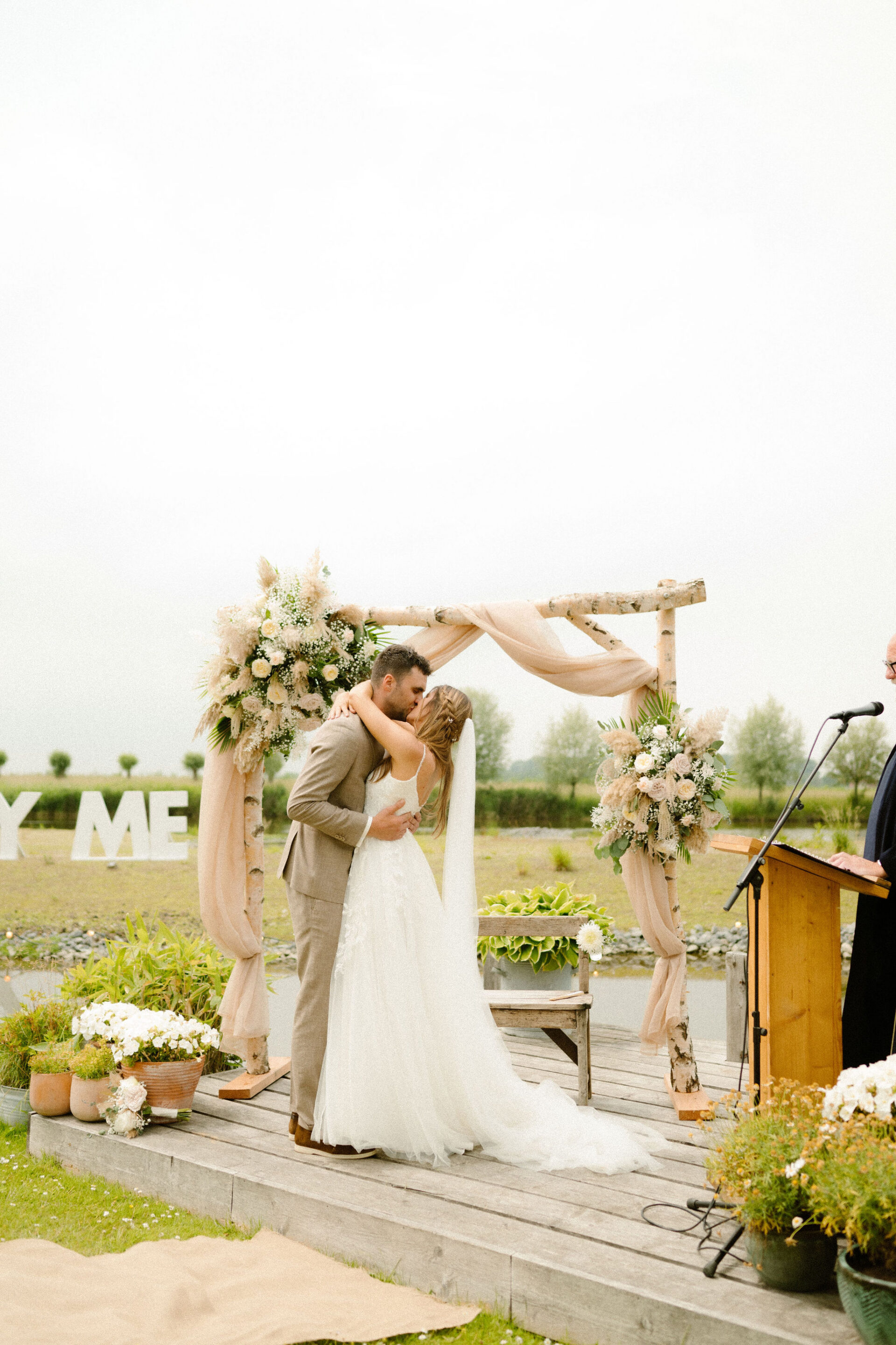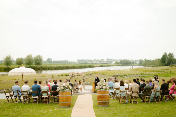 Trouwen op een boerderij met prachtig uitzicht op het water.